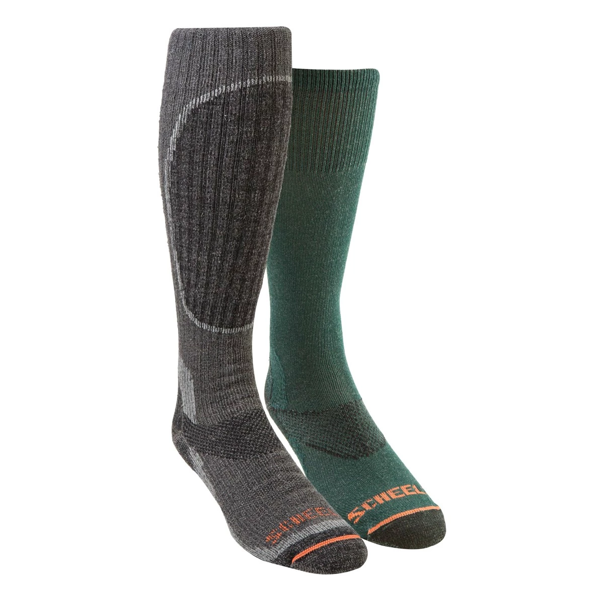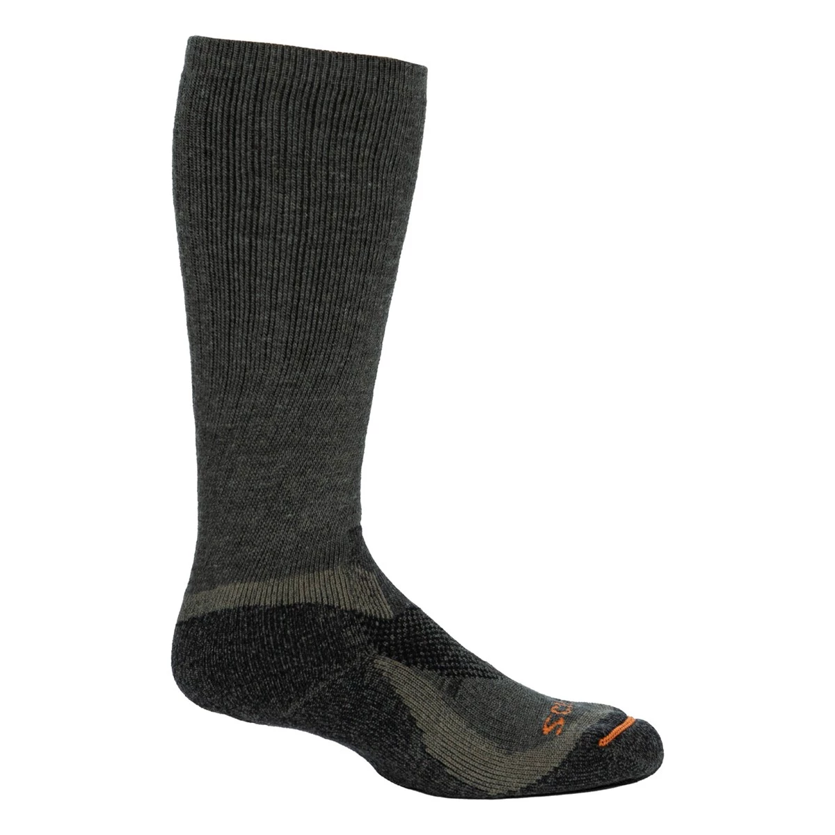 And for those extreme days I wear the Extreme Weather System socks. Together the socks combine the benefits of two different sock styles for a premium foot experience. The lightweight inner merino sock traps insulating air and wicks away moisture. The thicker outer sock delivers incredible warmth. Additional Lycra sections keep the sock in place and wrinkle free.