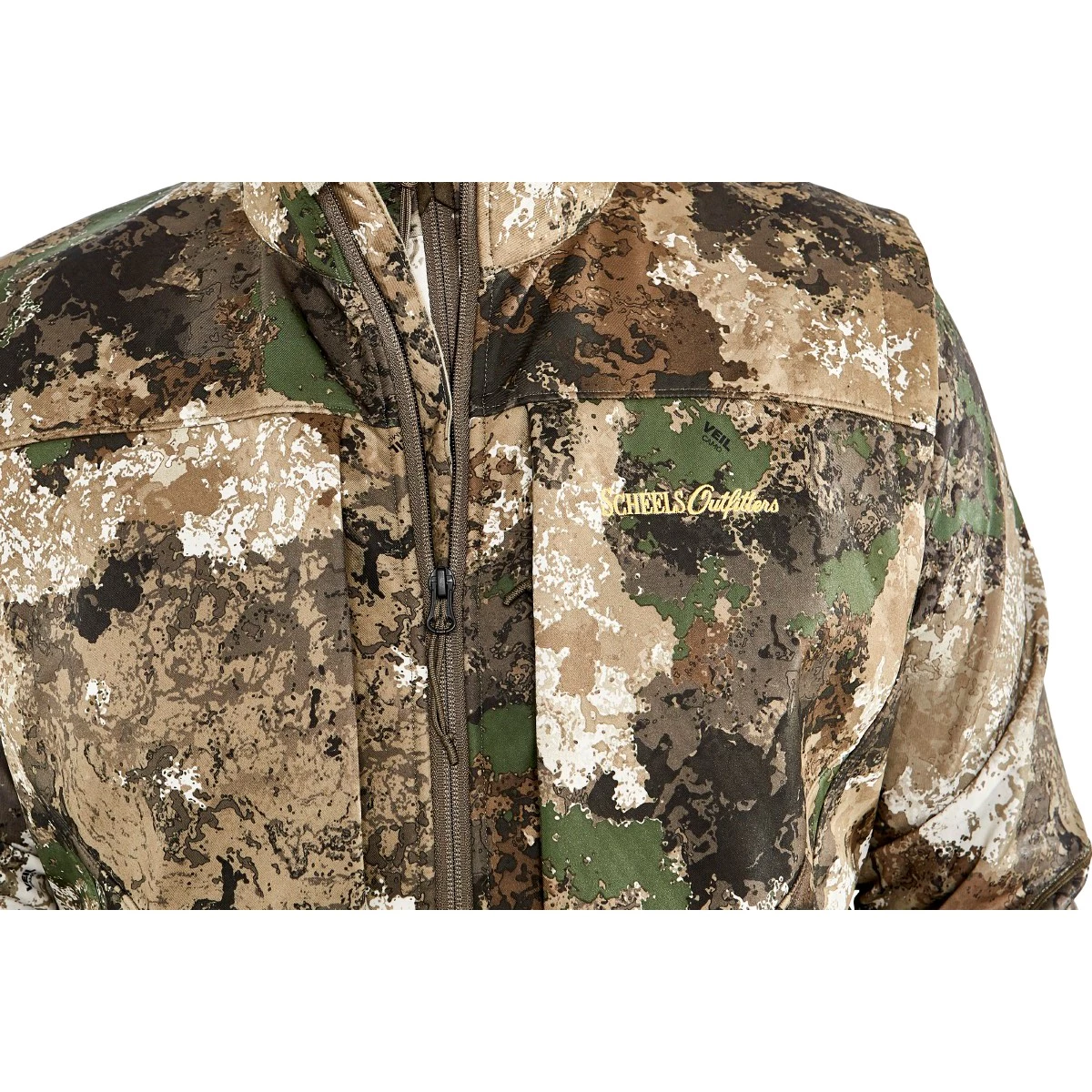 Find assurance on opening day by knowing that you will be protected from the elements and hidden from your game of choice in the Men’s Scheels Outfitters Boundary Jacket. Based on the technology and success of our Antler River Series we developed a softshell edition in our new pattern to be our workhorse in the Big Game Collection. The softshell face makes this our most versatile outerwear system built to withstand harsh abuse in a variety of atmospheres. The Men’s Scheels Outfitters Boundary Jacket features a lightly insulated interior with a Durable Water Repellent surface making it your go-to for any adventure.Â
