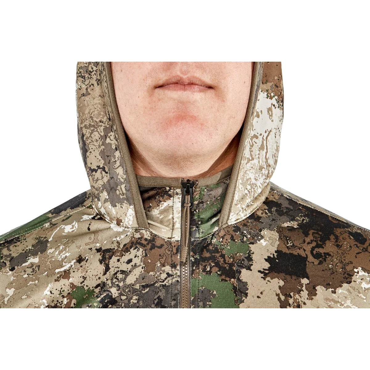The Musselshell Hoodie is our lightest synthetic blend offering in the Big Game Collection. Featuring the popular hooded design along with a pass through Kangaroo pocket, this early season, layering garment will keep you cool in the early season and can be worn as the foundation of your layering system moving into the late season.