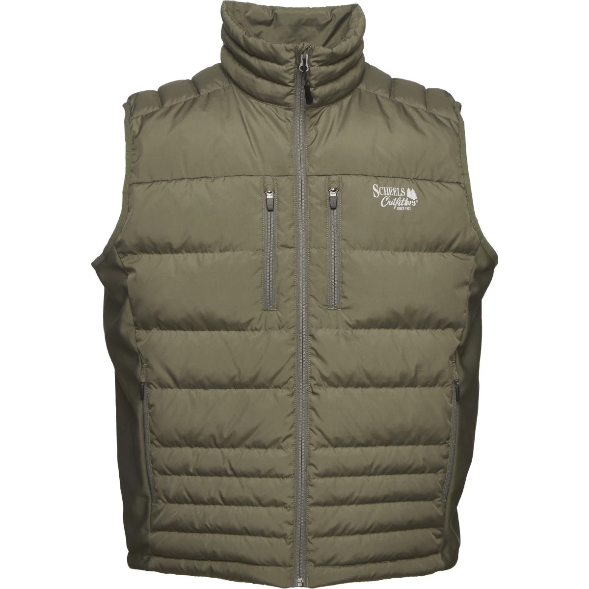 The SCHEELS Outfitters Ram River Down Vest is an insulated vest perfect for chilly days. The fleece-lined sides provide warmth while keeping your movement flexible. The premium down-filled insulation traps body heat for added warmth, while a durable water repellent finish resists light precipitation and prevents the face fabric from wetting out. Plus, this SCHEELS down vest has plenty of pockets for storing gear or quickly warming up your hands. The perfect layering piece day in and day out, the SCHEELS Outfitters Ram River Down Vest is a great choice for any outdoor expedition.