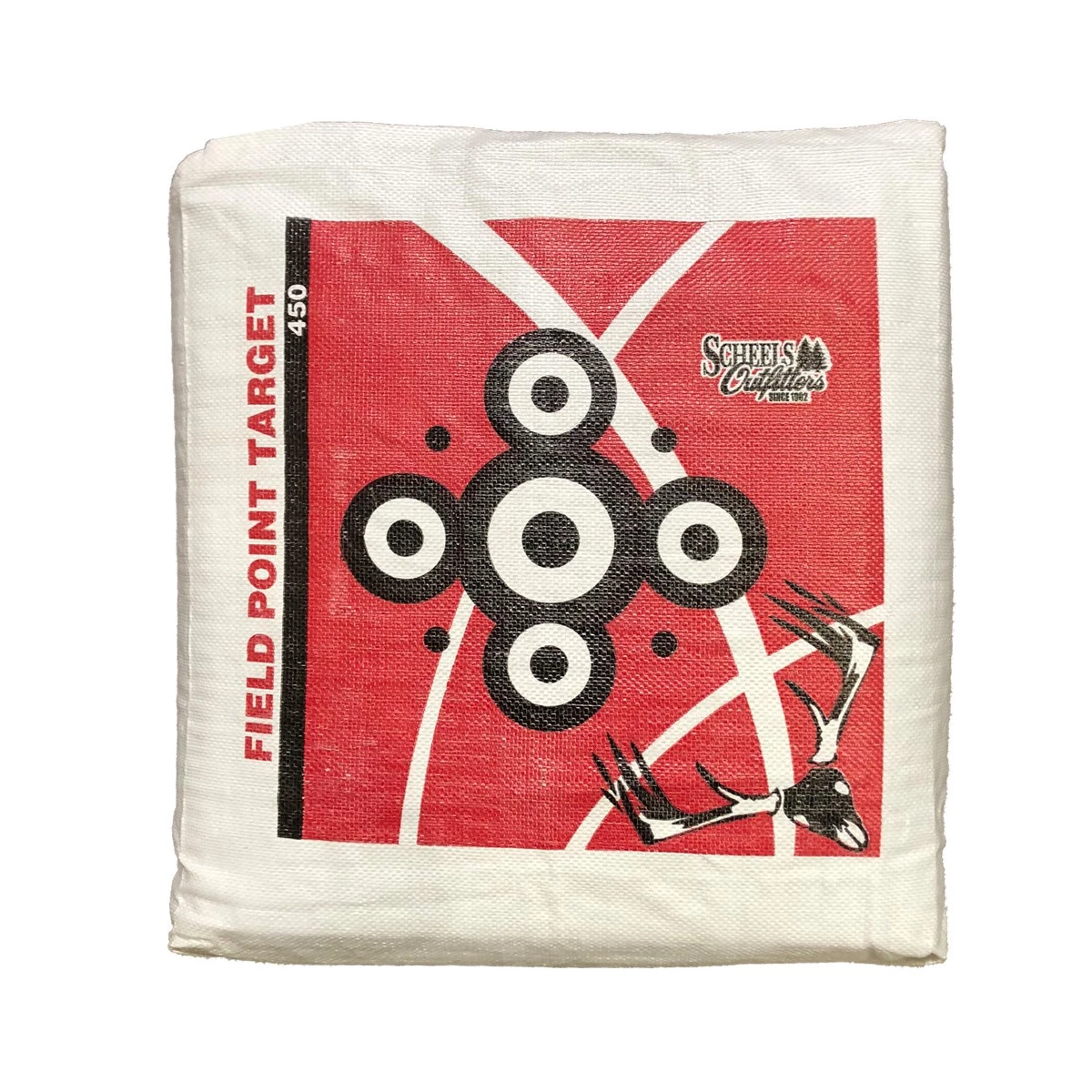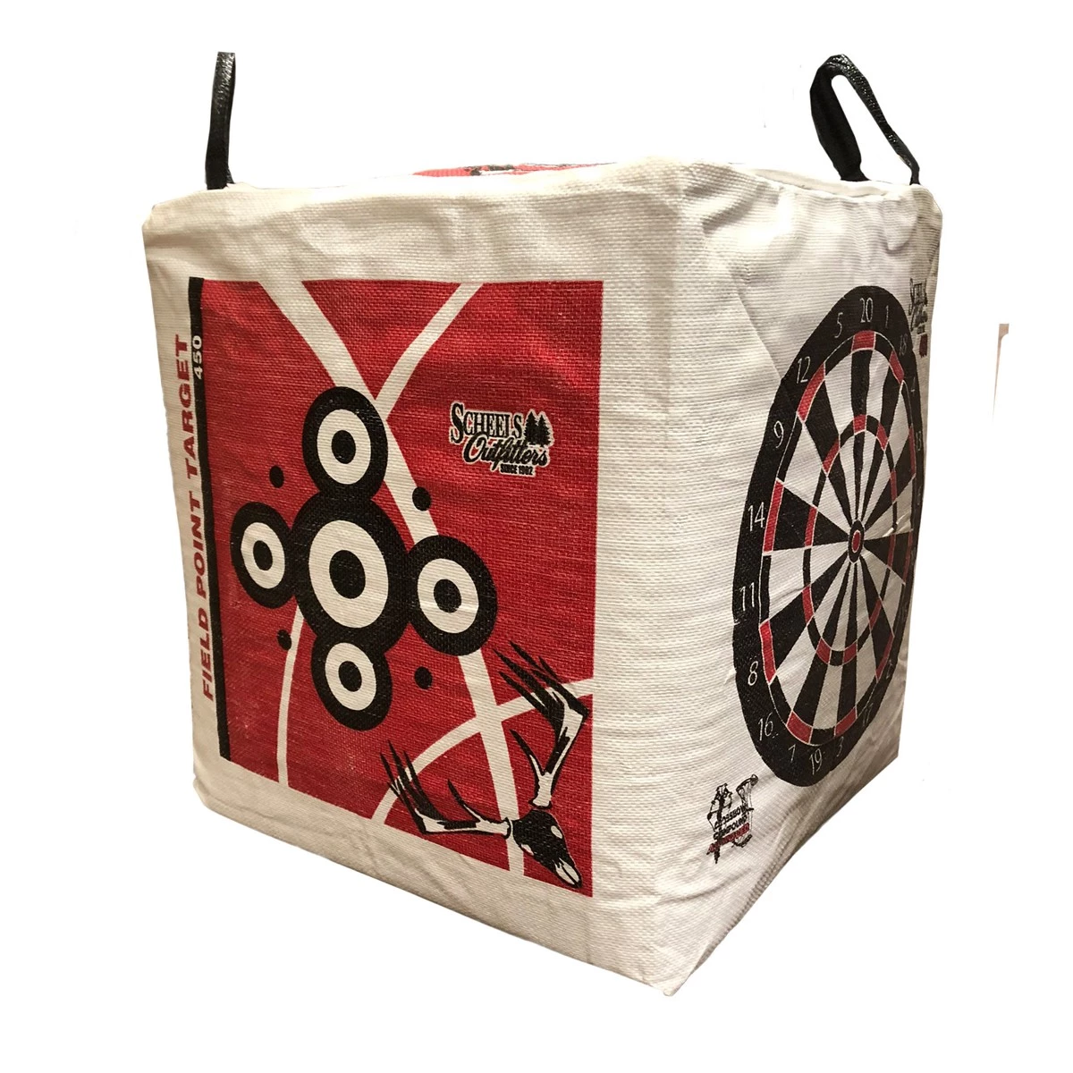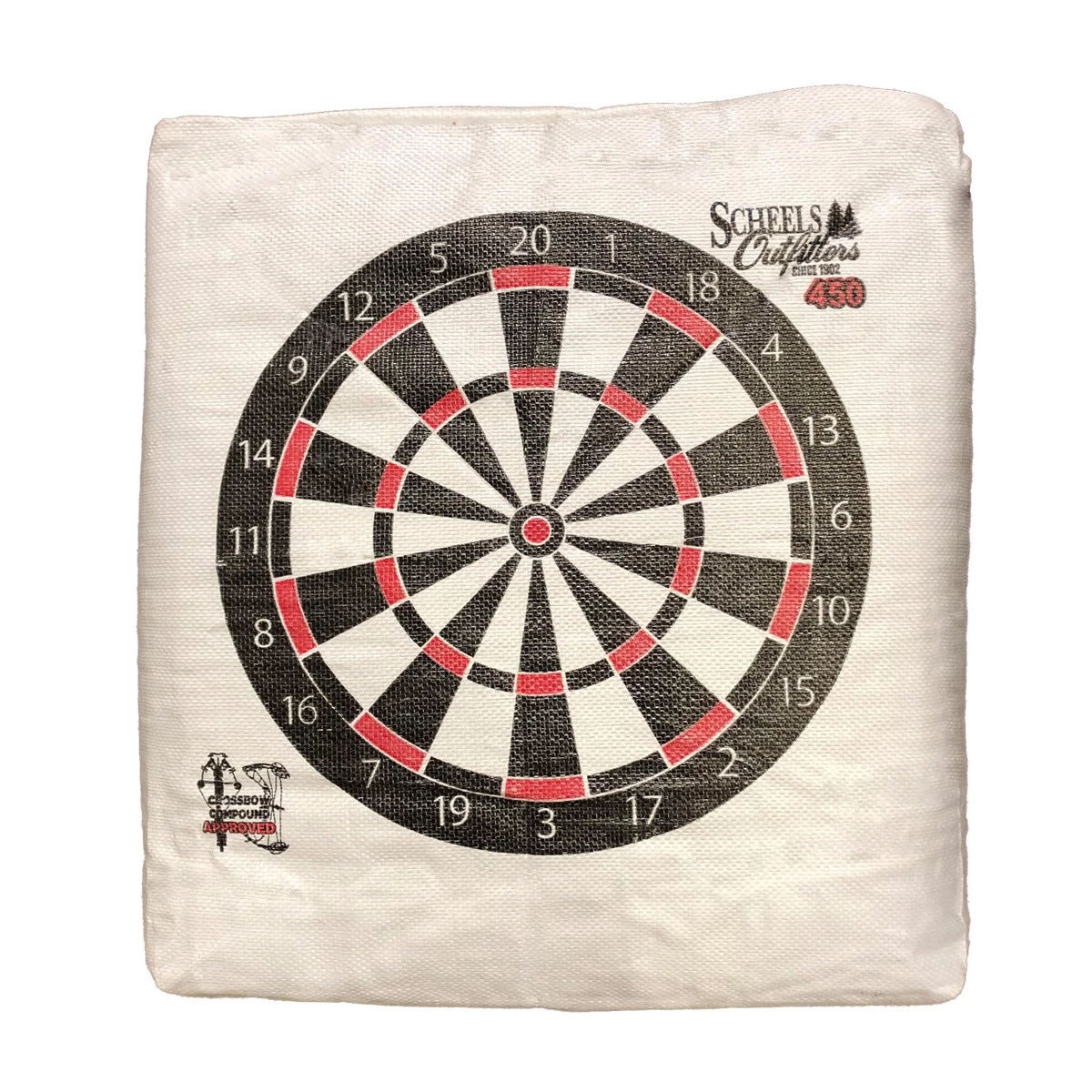 The SCHEELS Outfitters Target Bag will help you finetune your shot and hone your aim before your next bow hunt. This archery target bag is compatible with compound bows and crossbows up to 450 FPS and is designed for easy arrow removal. The four-sided design extends the life of the target and provides four different practice targets: two dot targets, one dartboard-style target, and one vital target. This SCHEELS bow target is 100% weatherproof and provides versatile target practice for seasons to come. Get ready for your next archery hunt with the SCHEELS Outfitters Target Bag.