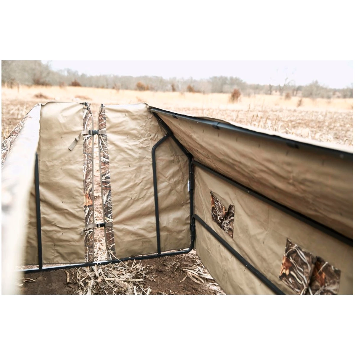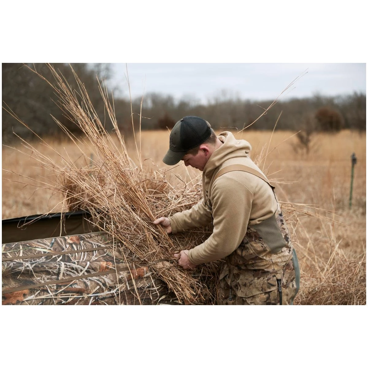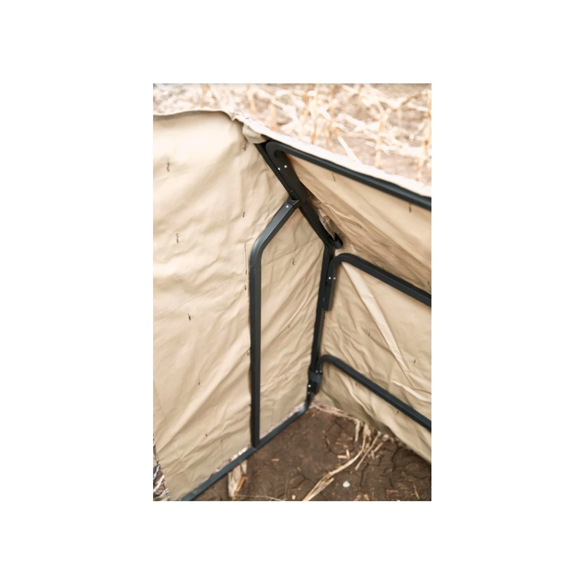 The SCHEELS Outfitters A-Frame Blind is built for next-level concealment for waterfowl hunters. This SCHEELS blind features durable 3/4-inch aluminum tubing that provides more support and prevents the cover from sagging. The blind cover is constructed of 600-Denier fabric with a PVC-coated backing. This waterfowl blind has a unique walkthrough design with no bars to duck under, improving accessibility. Plus, multiple stubble straps and pockets allow hunters to add natural camo like grasses and reeds. With an included carrying strap, the SCHEELS Outfitters A-Frame Blind is built to provide hunters a little extra room to maneuver with maximum concealment.