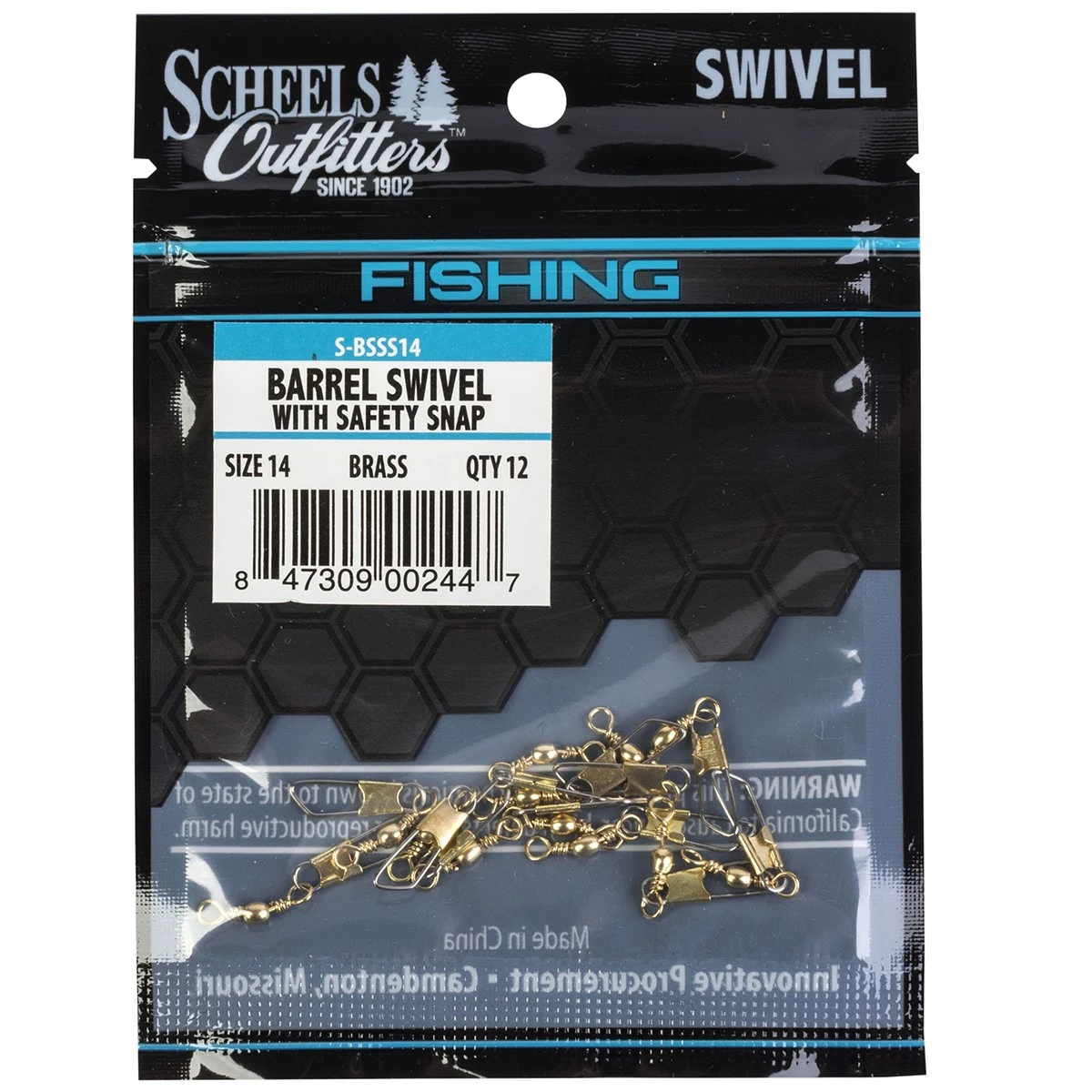 Scheels Outfitters Barrel Swivels with safety snap are designed to assure smooth movement and eliminate line twist.