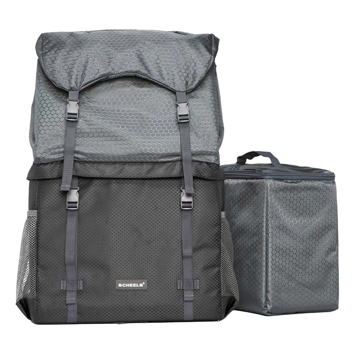 The SCHEELS Outfitters Camping Cooler Backpack provides easy portability and plenty of storage. This SCHEELS Outfitters Camping Cooler has an adjustable shoulder strap for comfortable carrying and generous side expandable pockets. The front lashing straps on this camping cooler carry additional gear while the generous-sized side pockets are great for holding water bottles. With an insulated, removable soft-sided cooler and catch all top storage, the SCHEELS Outfitters Camping Cooler Backpack provides all you need.Â