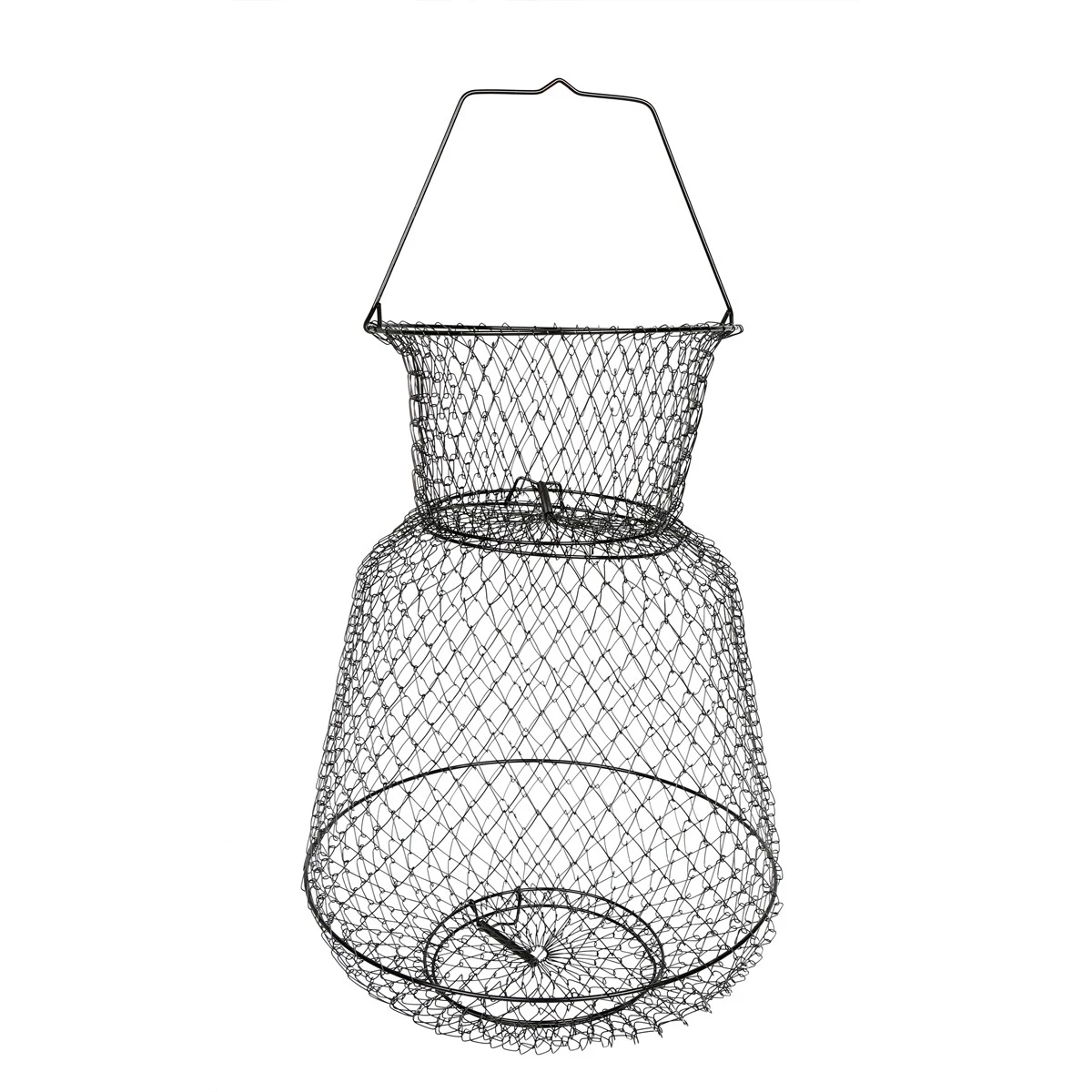 The Scheels Outfitters Fish Basket is ready for angling action! The collapsible basket is made from anodied wire with spring-loaded trap doors top and bottom.