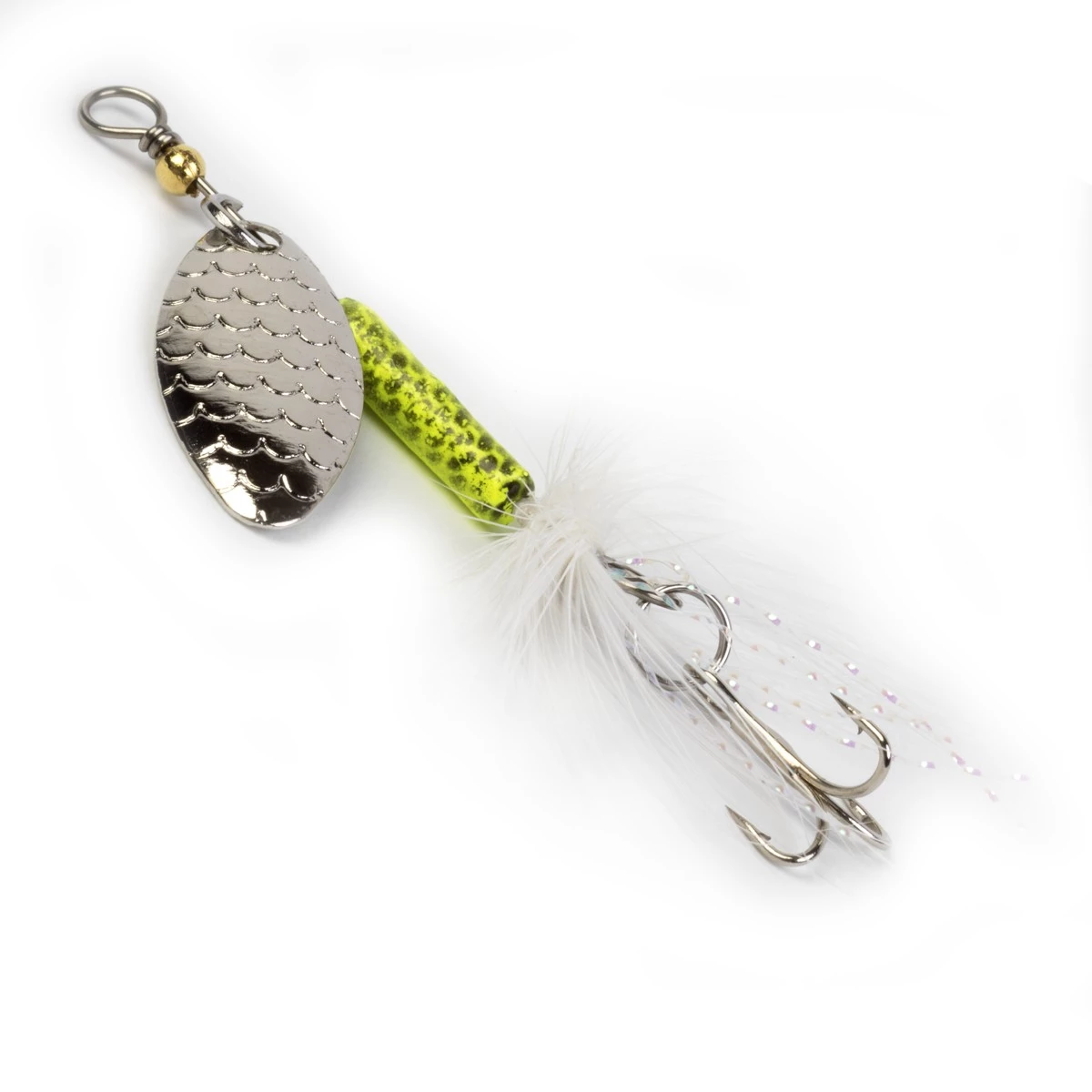 Bring in more action with the Scheels Outfitters Inline Spinner lure. This versatile design attracts many species with its vibrating blade and active hackle tail.
