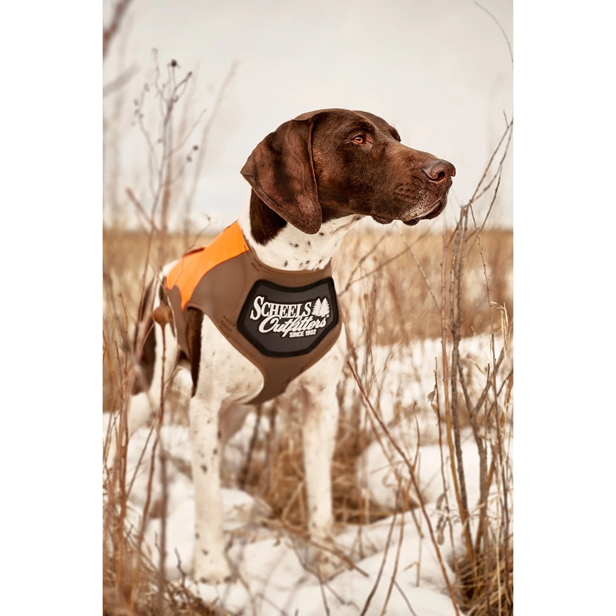 The Scheels Outfitters Performance Dog Hunting Vest will keep your hunting dog safe and warm in the field. This dog vest is made with a durable Denier outer shell for abrasion and cut resistance, perfect for running through thick brush on upland hunts. The neoprene chest panel provides minor impact resistance and flexible movement, while the front chest protector adds extra safety for your dog. This Scheels Outfitters hunting dog vest also features a 4-inch wide hook and loop closure to fit a wide range of dog breeds and sizes. Keep your favorite hunting buddy safe in the field with the Scheels Outfitters Performance Dog Hunting Vest.