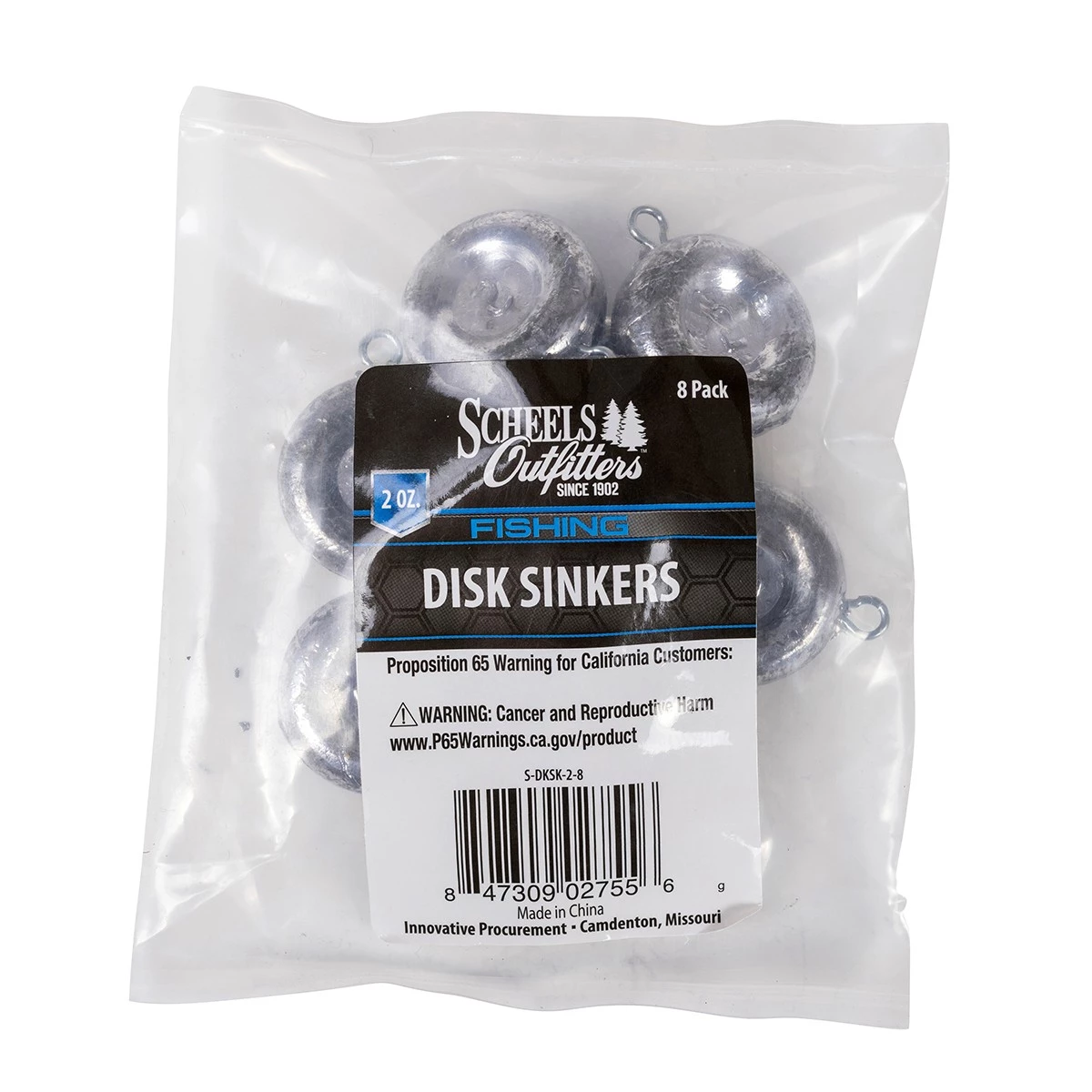 Scheels Outfitters Disk Sinkers are the perfect fishing weight to take any fishing lure through thick vegetation and keep it down where fish are biting. Disk sinker weights are available in four different sizes.