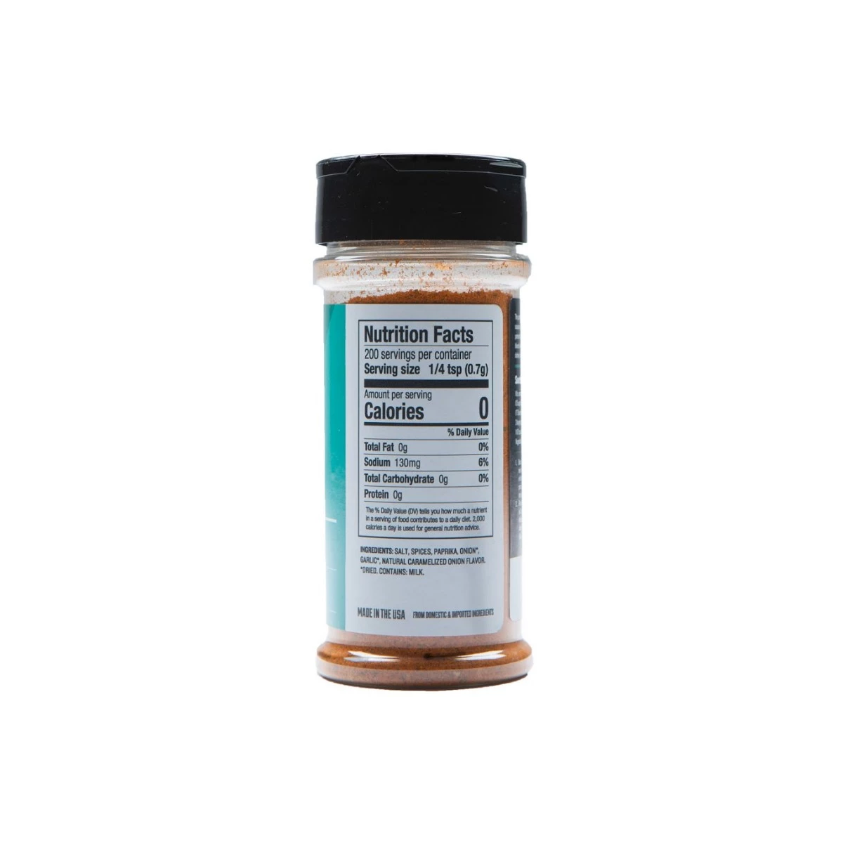 Salt, Spices, Paprika, Onion*, Garlic*, Natural Caramelized Onion Flavor. *Dried. Contains: Milk.