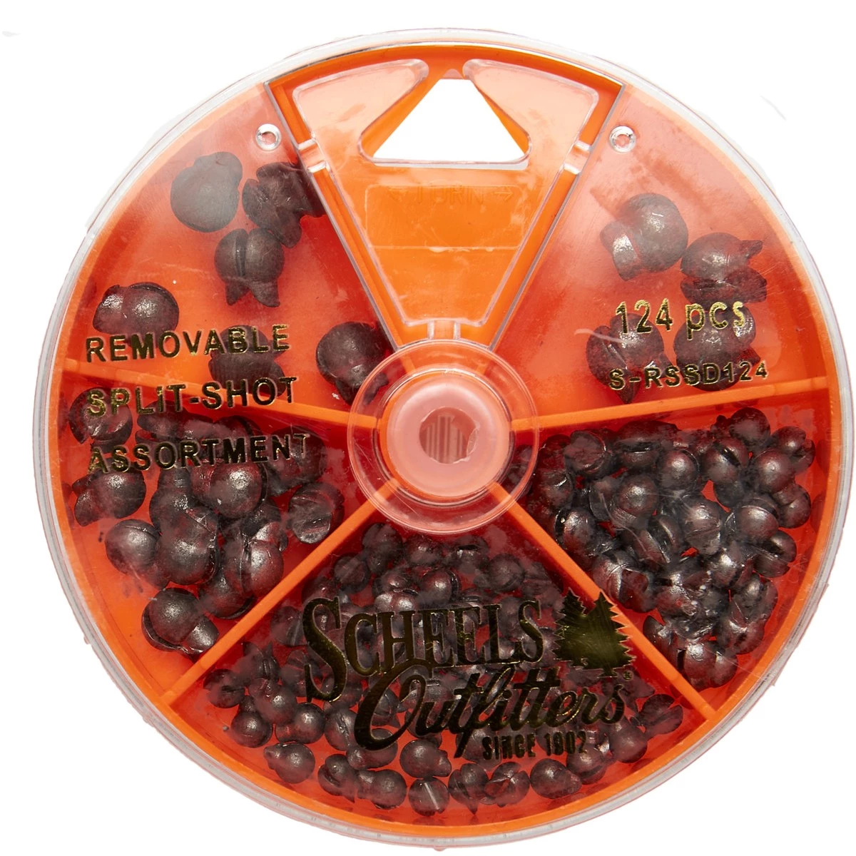 The SCHEELS Outfitters Split Shot Sinker Dial Box has 124 total weights in five different sizes. These sinkers easily attach to your line, and the assorted sizes will ensure you always have the right weight for your rig. Complete your tackle box with the SCHEELS Outfitters Split Shot Sinker Dial Box.
