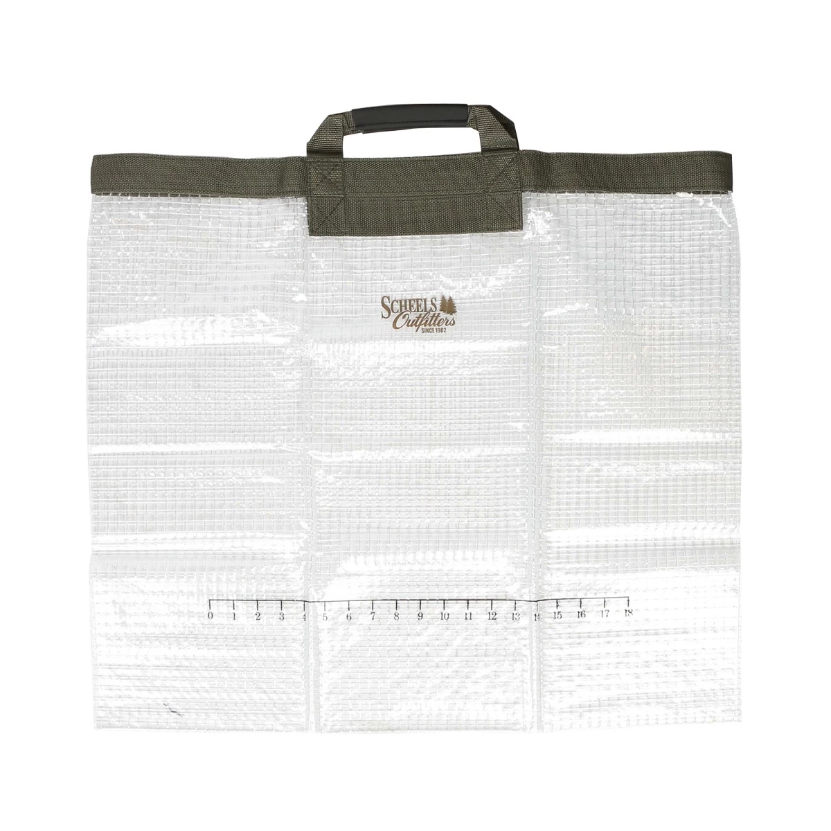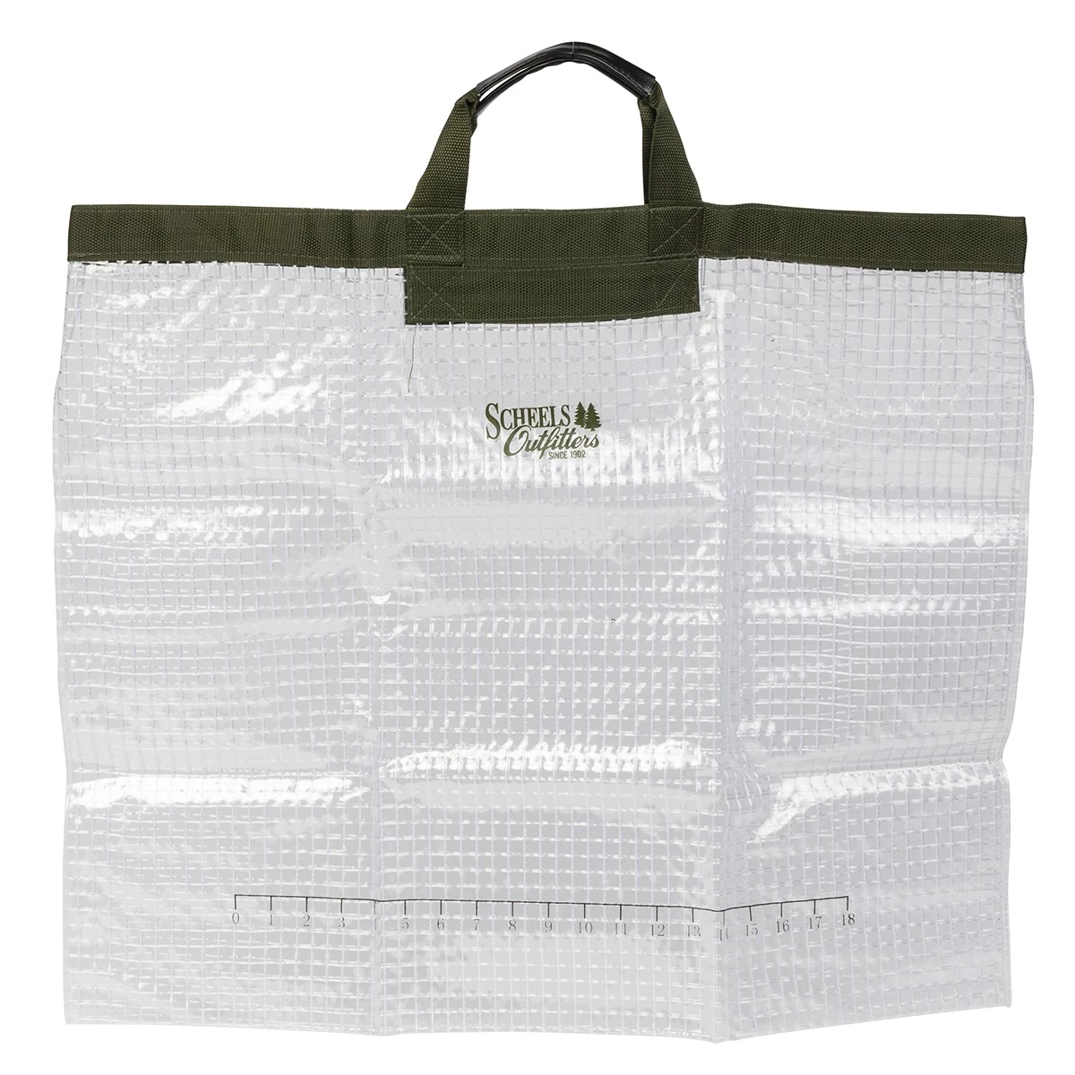 The Scheels Outfitters Tournament Weigh Bag is designed to provide tournament and recreational anglers with a top quality carrying bag for their weigh-in fish. The generous size of this fish weigh bag lets you carry all your catch without stress.Scheels Outfitters Fishing Tournament Weigh Bag Features:Fishing weigh bag made with heavy duty reinforced PVC tarpaulin material. Weigh-in bag features durable woven nylon handles.Ruler printed on tournament weigh bags.Tournament weigh-in bag has 16 gallon capacity.Dimensions of tournament weigh bags: 27 inch x 23 inch.