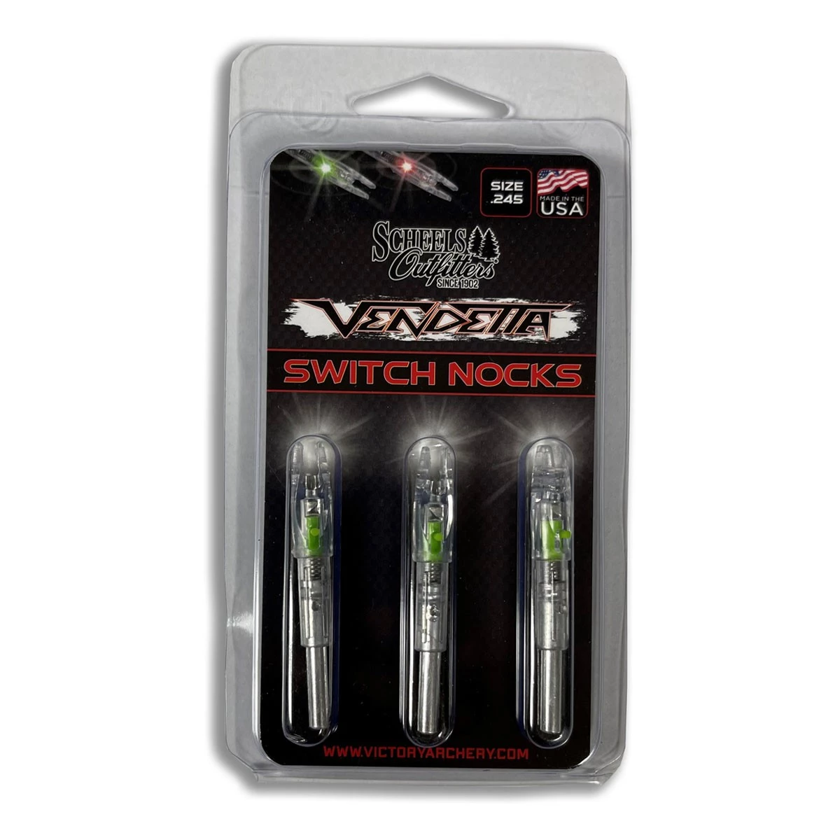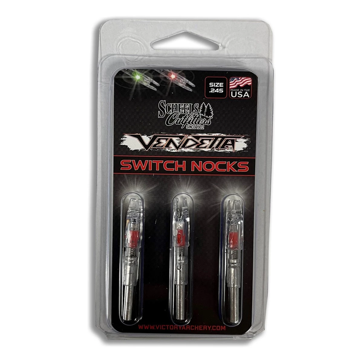 Switch Nocks can replace any Bohning signature, Blazer, or Easton S, Super 3-D, Super Uni nocks. Fits most “Standard Size” carbon arrow shafts with 0.245-0.246″ I.D. including standard shafts by: Victory, Scheels Vendetta, Forge, Easton, PSE, Beman, Carbon Express, Carbon Tech, Carbon Force,Vapor, Gold Tip, Carbon Impact, Black Eagle, Bass Pro Black Out, and other standard diameter arrow shafts.